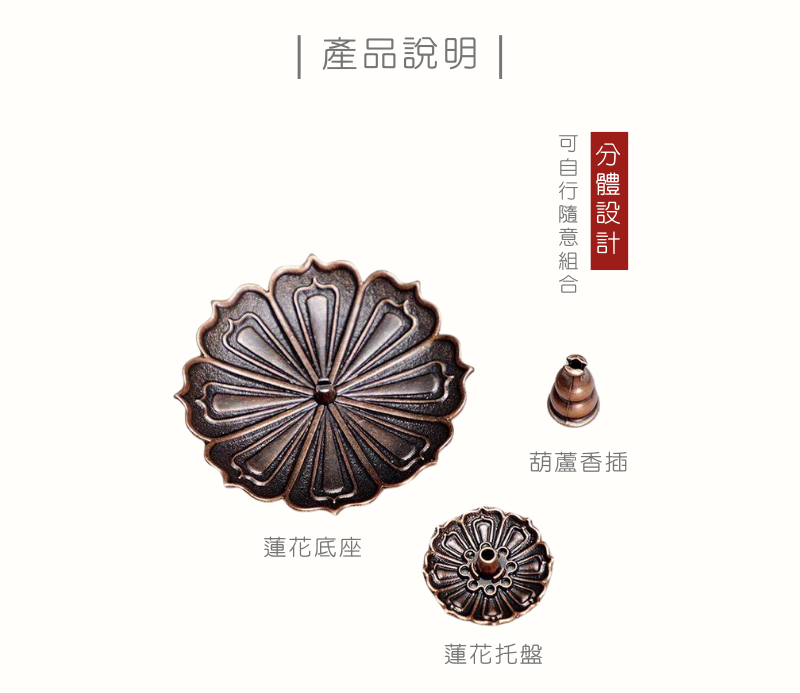 蓮花香盤適合用於臥香,盤香與7寸下的立香,8寸以上可能會站不穩。