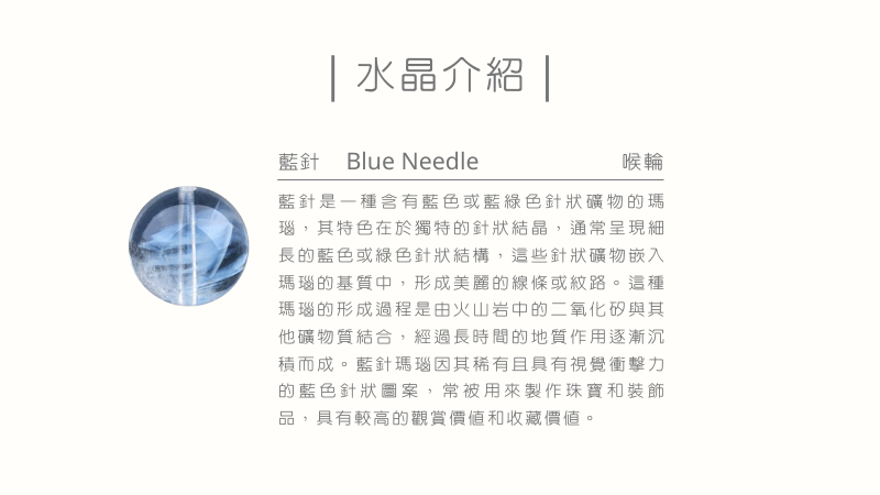 無論是作為觀賞收藏或用於冥想和能量療法,藍針水晶都因其獨特的魅力和強大的能量而備受珍視。